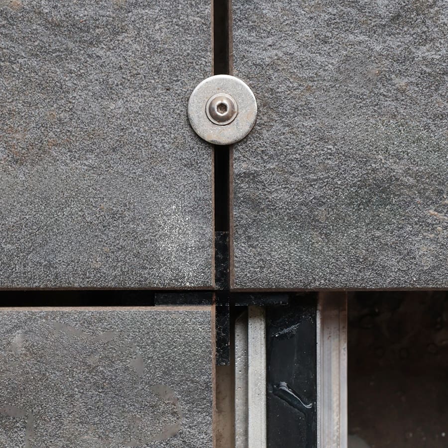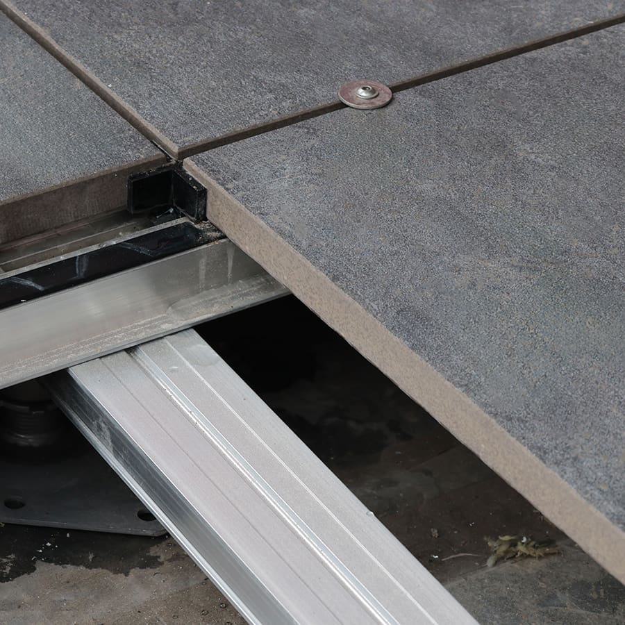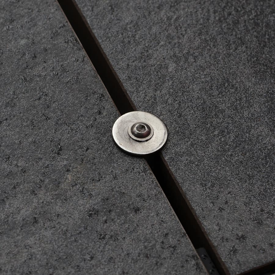 The Rail Wind Uplift Restraint – Visual Fixing is a subtle stainless steel component that provides wind uplift restraint for RYNO® porcelain pavers when used with the RST Aluminium Paving Support Rail. The bottom washer locks into the RST rail, while the dome head fixing and sleek stainless steel washer securely connects the paving surface to the rail.